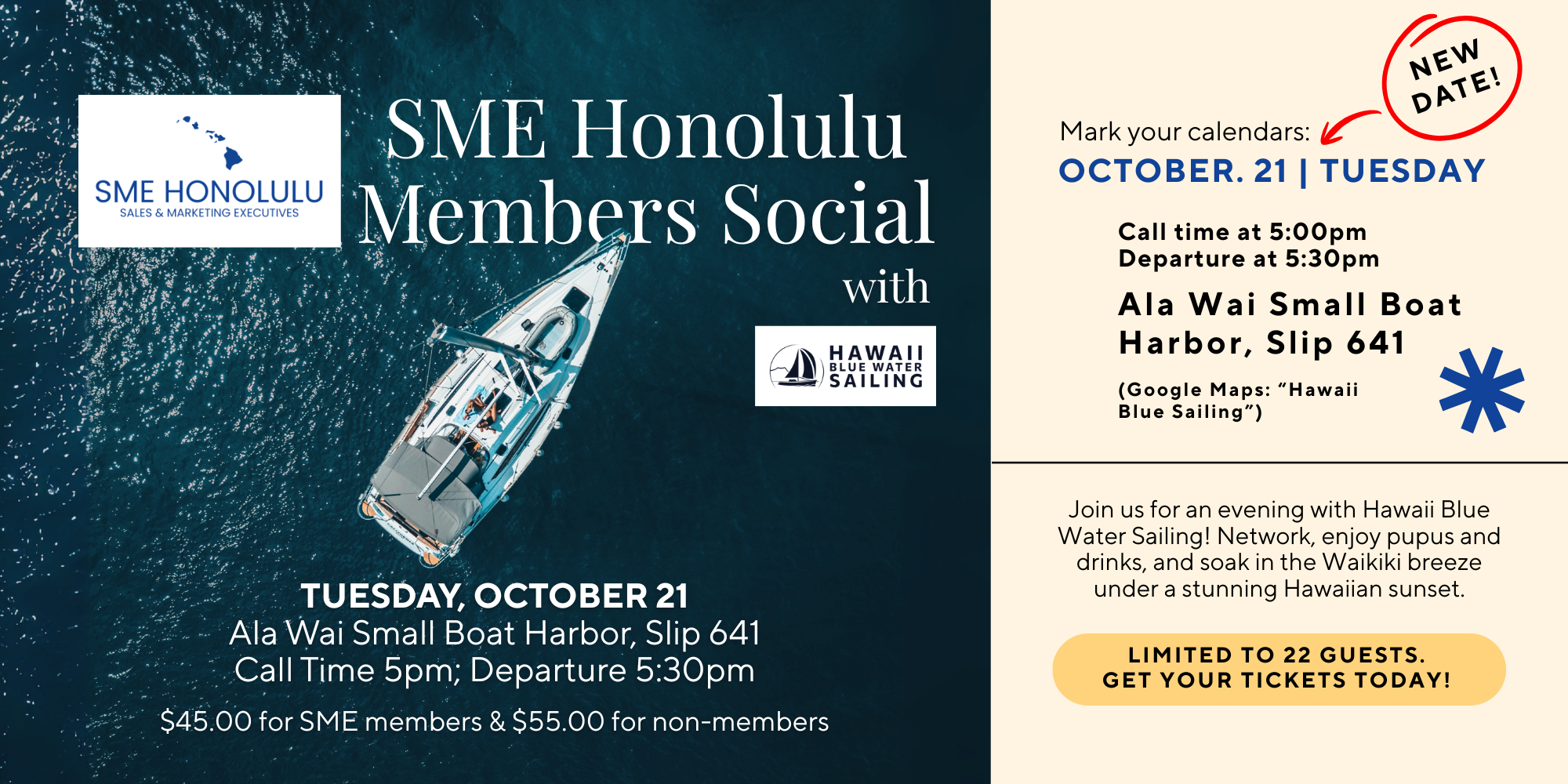 We’re back with another Members-Only Social Sailing Event! 🌊✨ Limited to just 22 guests, this special pau hana gathering is the perfect way to unwind, connect, and enjoy the evening — and yes, you can bring a plus one!